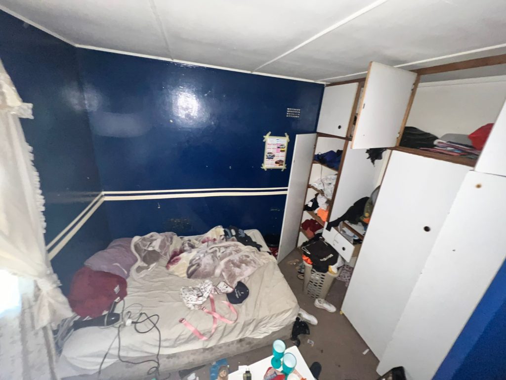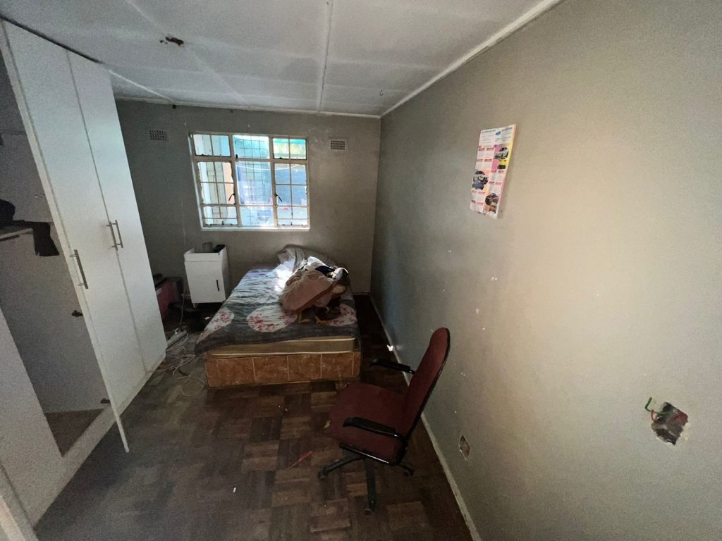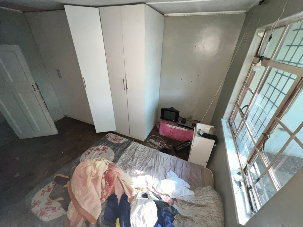 Each bedroom includes built-in cupboards, ensuring plenty of storage. The bathroom is well-appointed with a toilet, basin, shower, and bathtub, though it could benefit from some refurbishment to match your style.