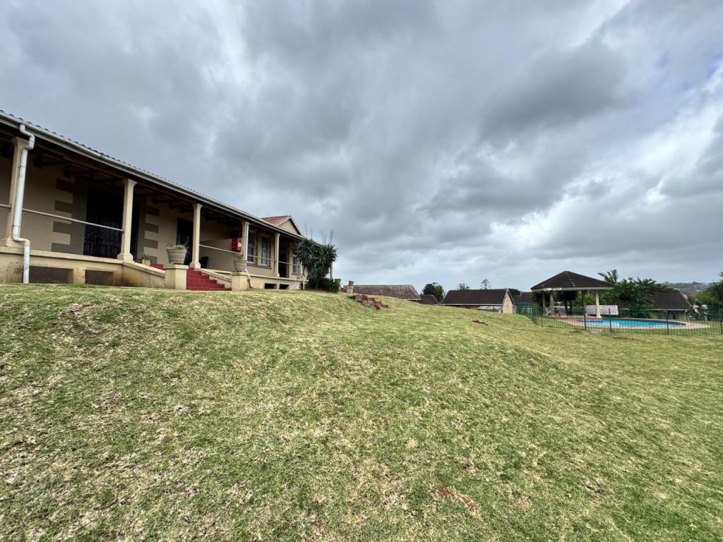 It offers a tandem garage accommodating two vehicles. The complex includes a communal swimming pool, while the property itself is fully fenced and boasts a spacious garden with a outside braai.