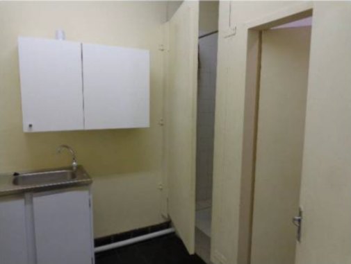 The unit includes a functional kitchen/store area, a private office, and a bathroom with toilet, basin, and shower – ideal for staff or customer convenience.