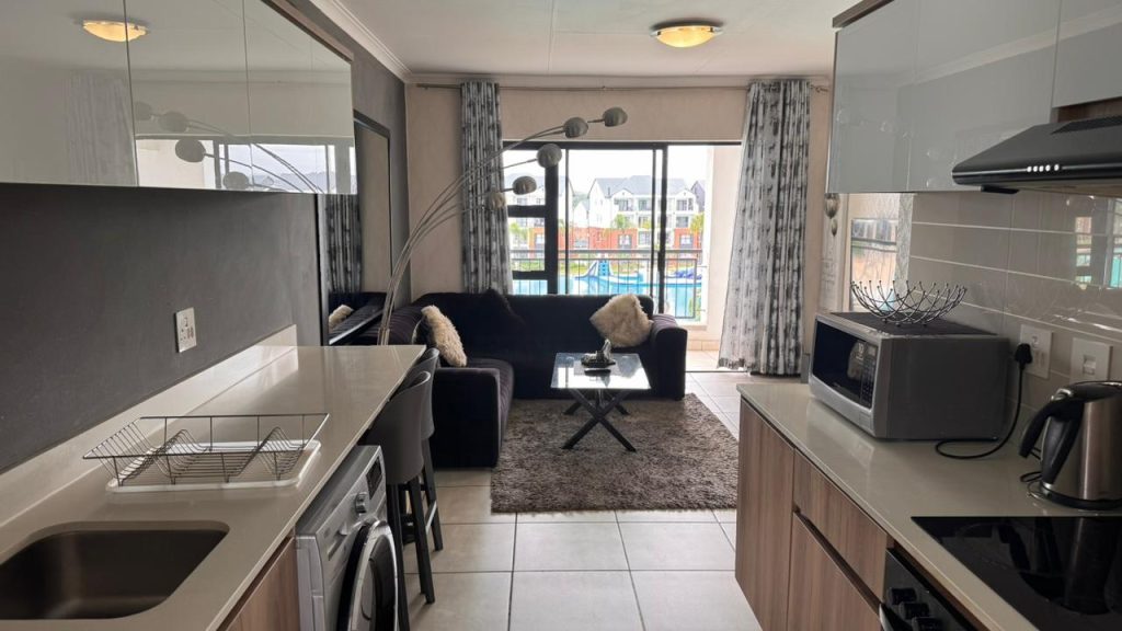This contemporary 1-bedroom, 1-bathroom apartment is set within the prestigious The Blyde Lifestyle Estate, offering secure living with a tranquil outlook over the estate’s iconic artificial sea.