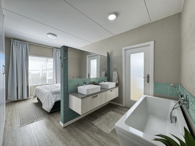 Step into the modern open-plan kitchen, complete with white granite countertops, lots of cupboard space, and room for two water appliances plus a double-door fridge—perfect for any culinary enthusiast.