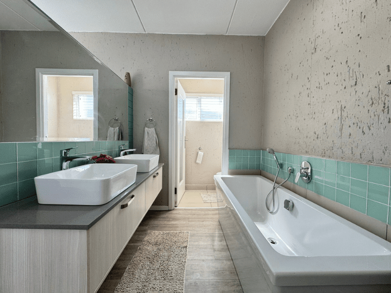The main bedroom includes an en-suite bathroom for added privacy, while a second bathroom with a shower, vanity, and toilet serves the rest of the family or guests.